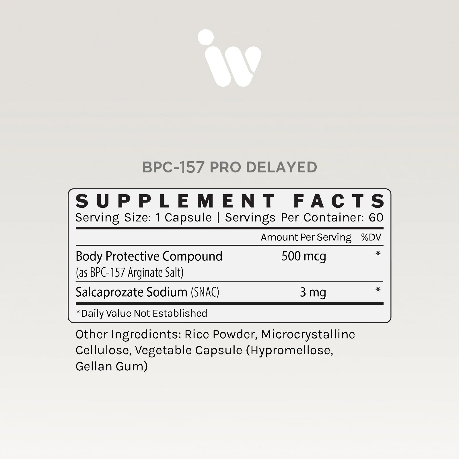 BPC-157 is predominately indicated for people who need joint and/or digestive (upper/lower) support. There are two time-release formula options: rapid and delayed. The rapid release formula is typically for upper GI application. Regarding joint health, rapid release is more appropriate for acute needs, while the delayed release works for more ongoing support. The delayed release formula is intended to reach the lower intestines without succumbing to the harsh environment of the upper digestive system. Historically, peptides have been notoriously difficult to absorb orally. Throughout the entire BPC-157 line, it is important to note the addition of Salcaprozate Sodium (SNAC), which works to enhance absorption and support the body's ability to utilize the desired serving level at the required time. Ingredients: Active Ingredient: Body Protective Compound, Salcaprozate Sodium (SNAC)
